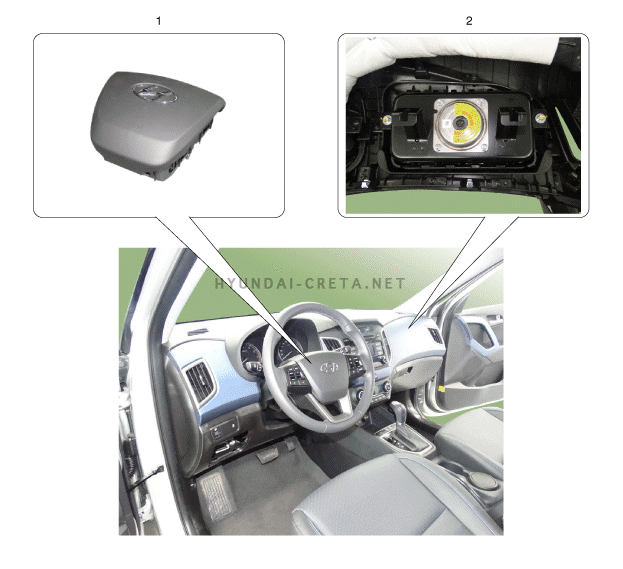 | 1. Подушка безопасности водителя (DAB) | 2. Подушка безопасности пассажира (PAB) |